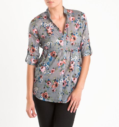 Kirra Womens Shelley Woven Tunic Floral Shirt - Gray X Med |Kirra | Reviews