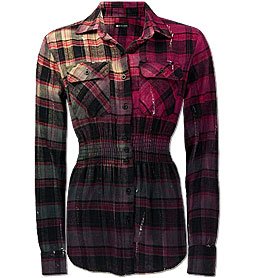 Krush Shirred Flannel Shirt Black Red Yellow For Sale